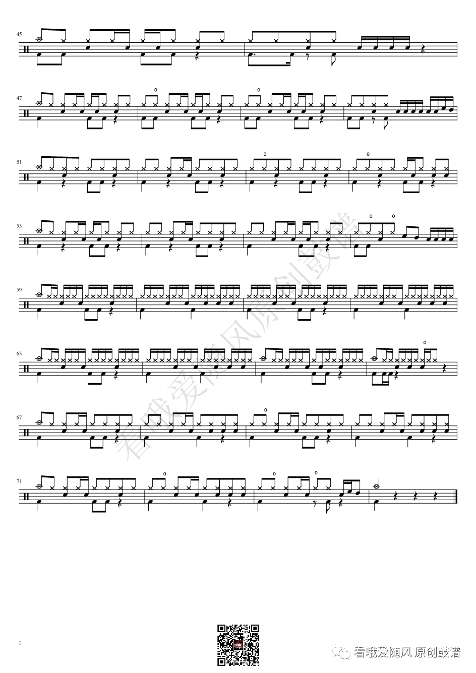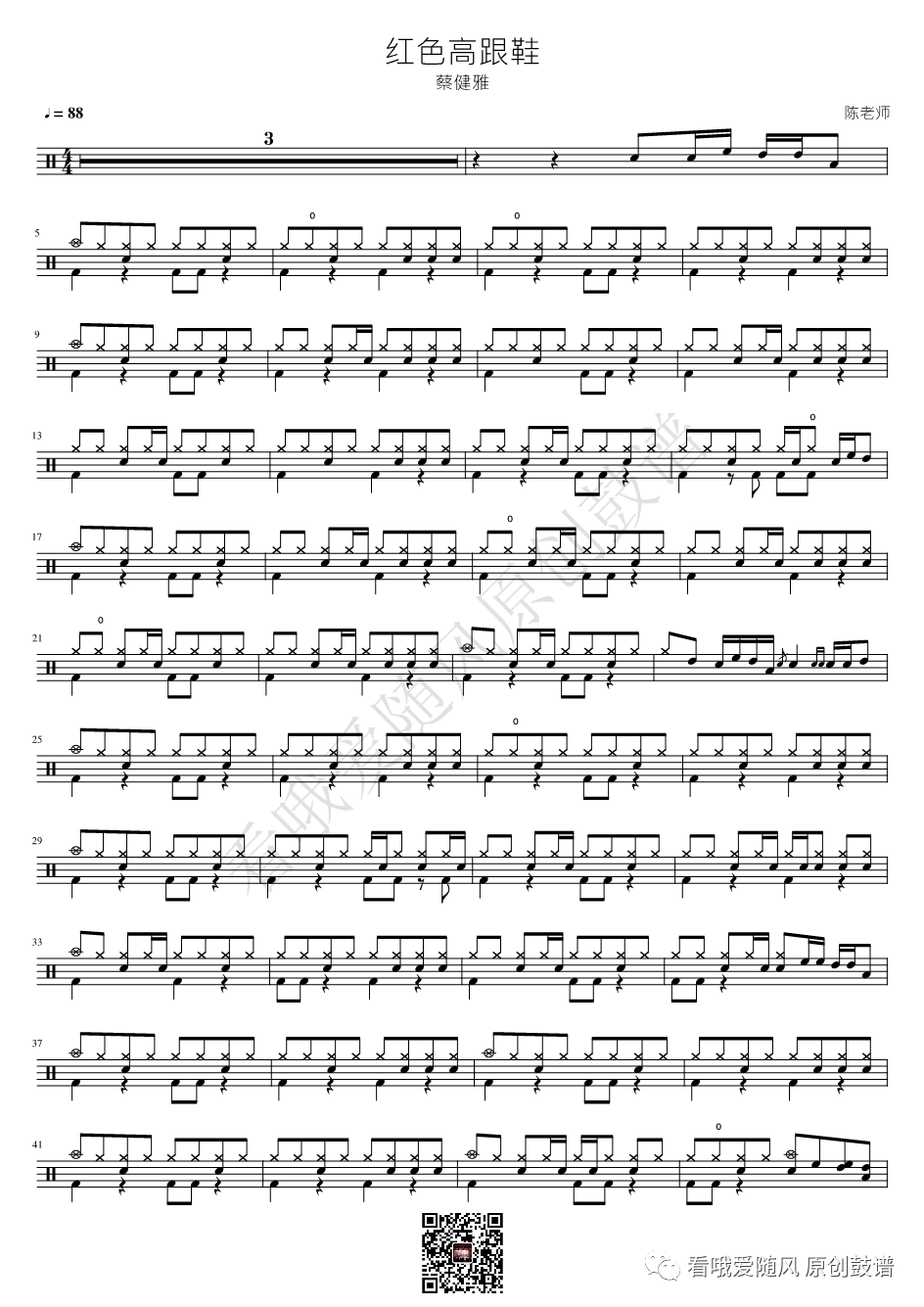 蔡健雅《红色高跟鞋》架子鼓谱, 看哦爱随风编配出品,共有2张高清图谱,由打鼓谱上传并分享。NO.364 红色高跟鞋 蔡健雅 鼓谱