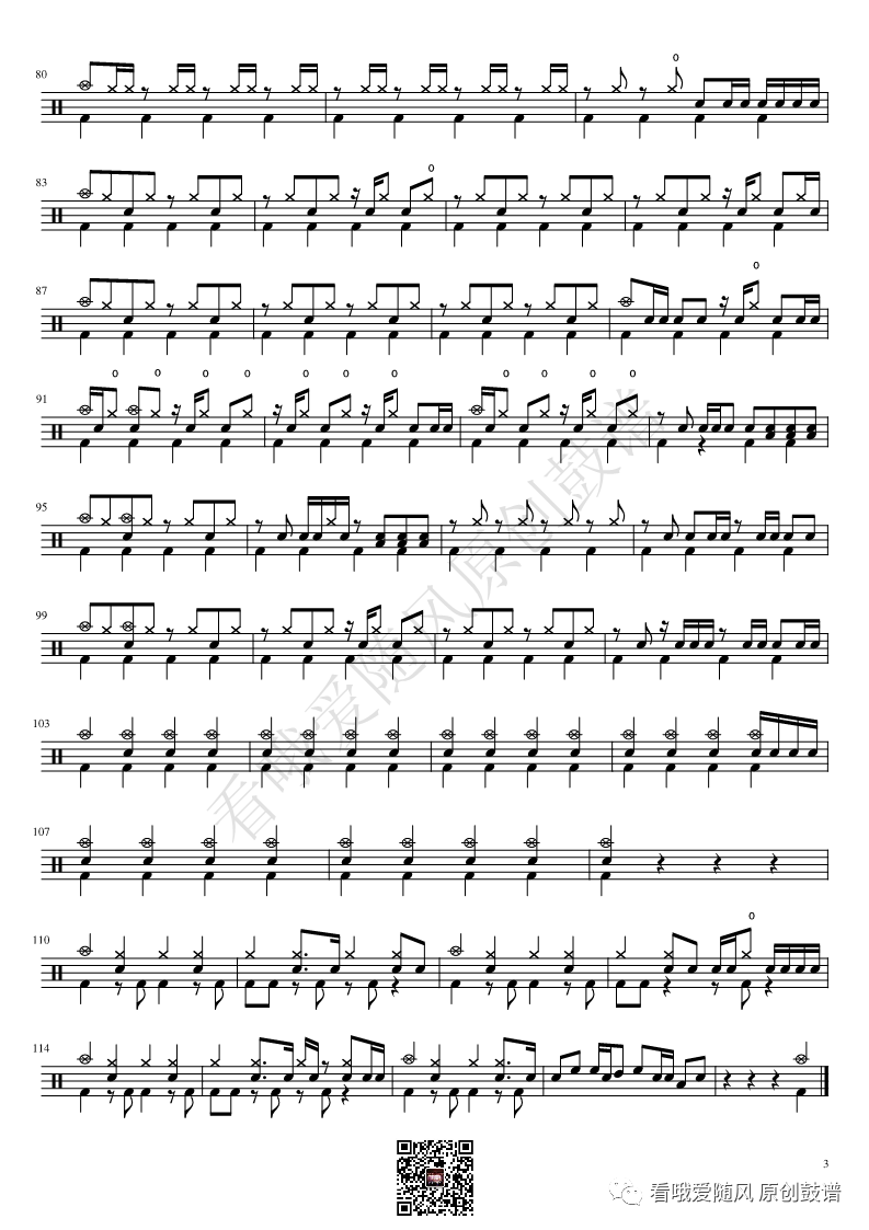 ONEOKROCK《Re:make》架子鼓谱,看哦爱随风编配出品,共有3张高清图谱,由打鼓谱上传并分享。