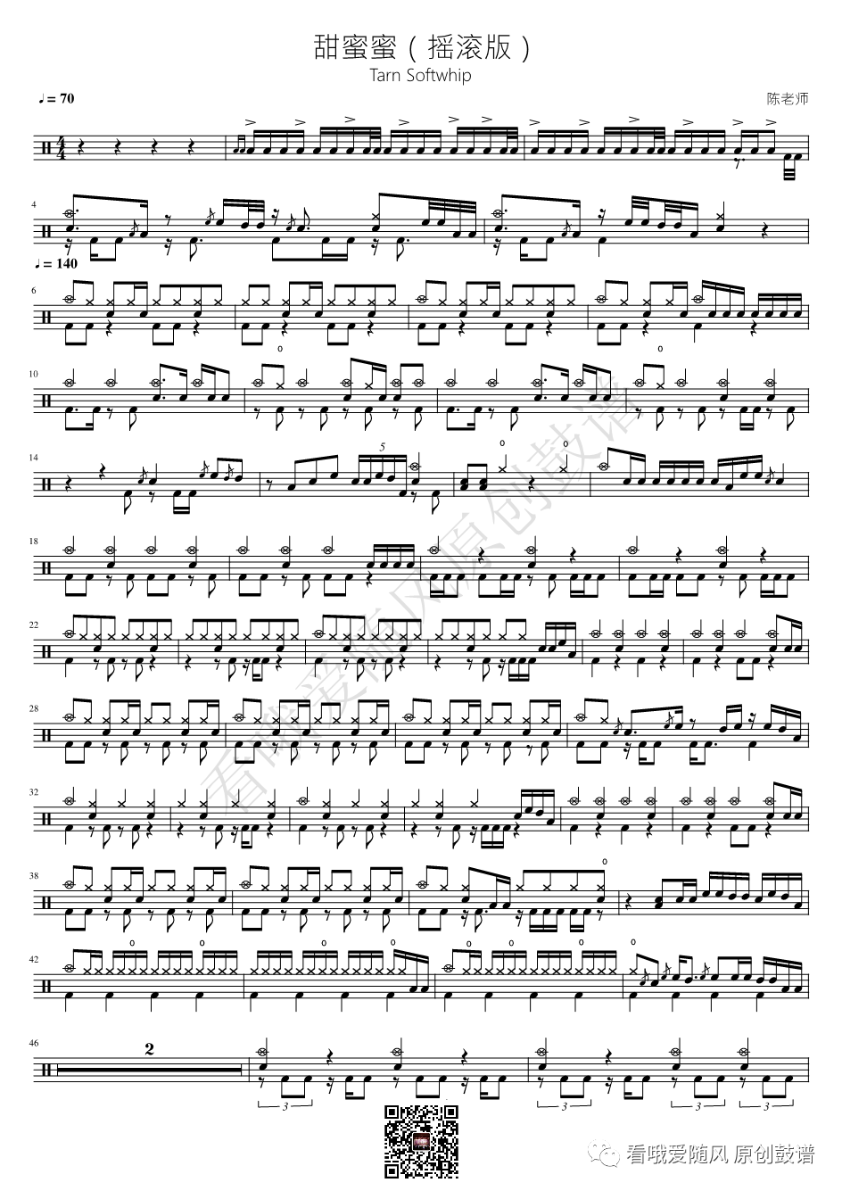 ONEOKROCK《完全感觉Dreamer》架子鼓谱,看哦爱随风编配出品,共有4张高清图谱,由打鼓谱上传并分享。