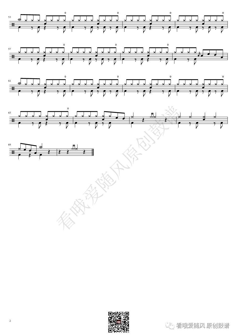 ONEOKROCK《IWasKing》架子鼓谱,看哦爱随风编配出品,共有2张高清图谱,由打鼓谱上传并分享。