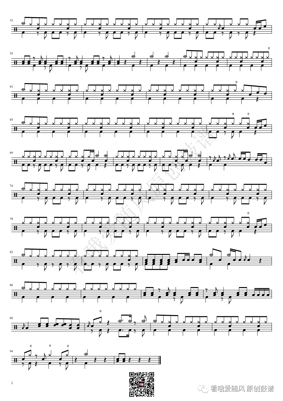 ONEOKROCK《IWasKing》架子鼓谱,看哦爱随风编配出品,共有2张高清图谱,由打鼓谱上传并分享。