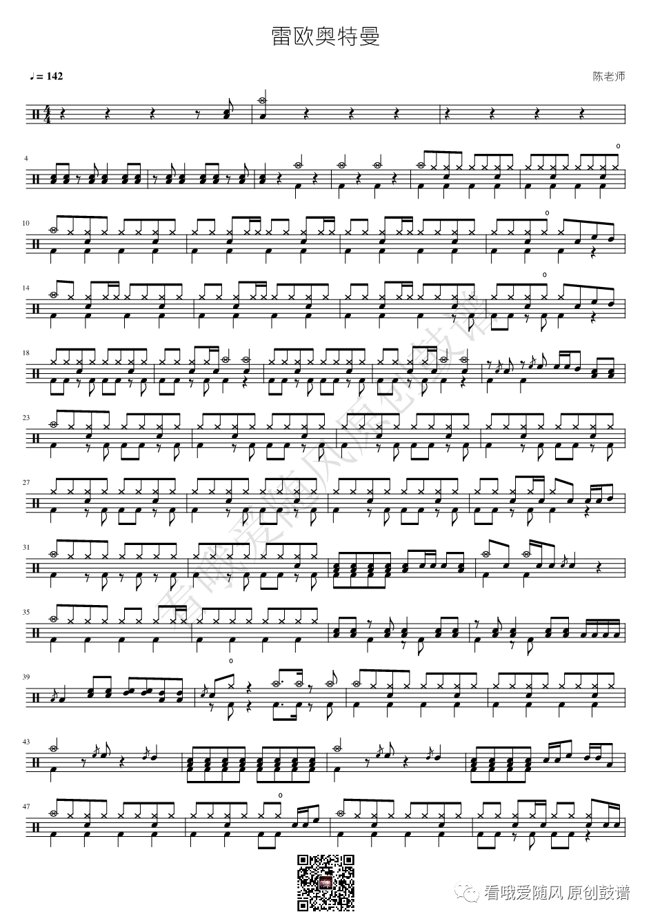 ONEOKROCK《完全感觉Dreamer》架子鼓谱,看哦爱随风编配出品,共有4张高清图谱,由打鼓谱上传并分享。