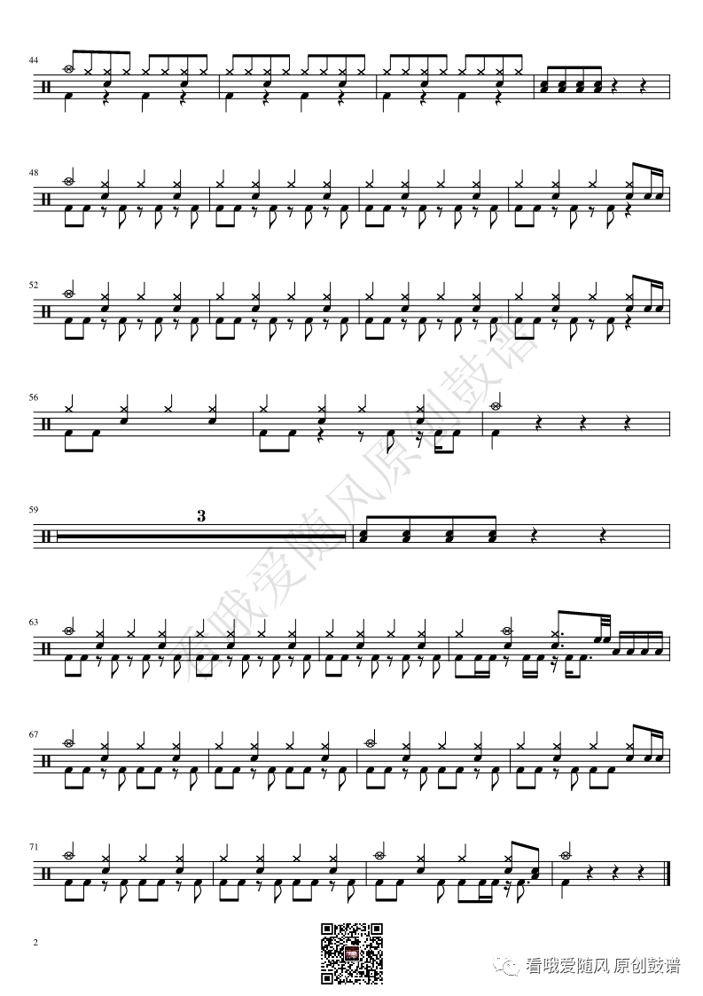 ONEOKROCK《IWasKing》架子鼓谱,看哦爱随风编配出品,共有2张高清图谱,由打鼓谱上传并分享。