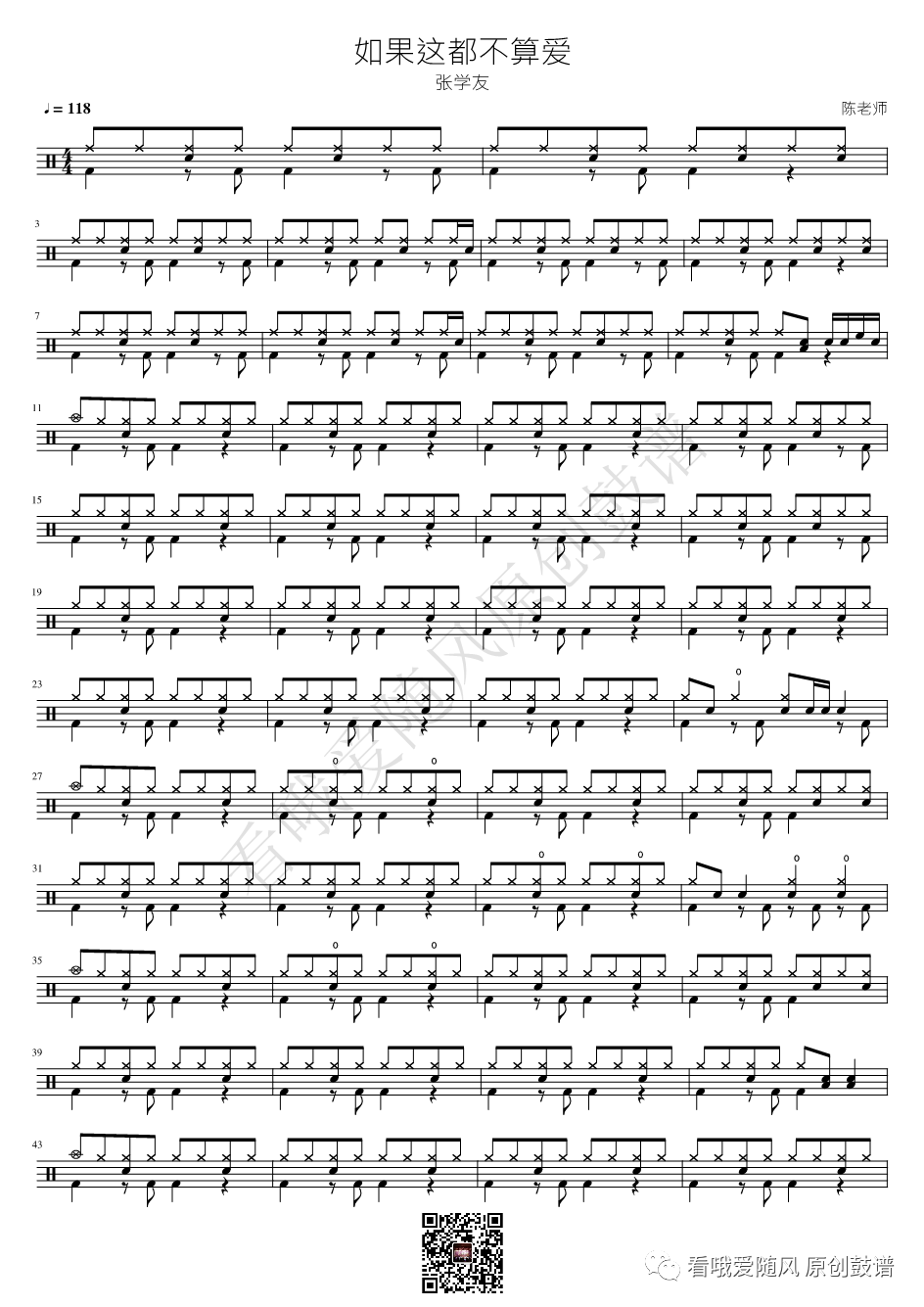 张学友《如果这都不算爱》架子鼓谱, 看哦爱随风编配出品,共有2张高清图谱,由打鼓谱上传并分享。NO.397 如果这都不算爱 张学友 鼓谱