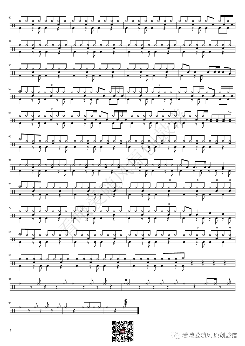 ONEOKROCK《IWasKing》架子鼓谱,看哦爱随风编配出品,共有2张高清图谱,由打鼓谱上传并分享。