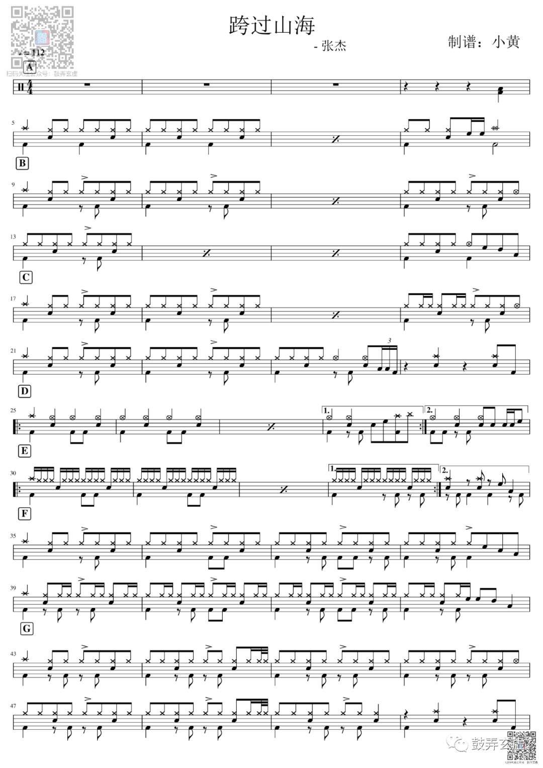如龙维新OP《ClockStrikes》架子鼓谱,看哦爱随风编配出品,共有1张高清图谱,由打鼓谱上传并分享。