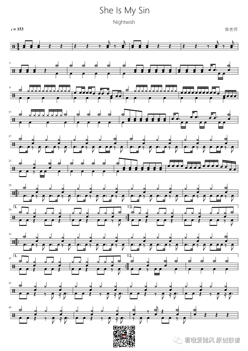 Nightwish《She Is My Sin》鼓谱 - 架子鼓谱 看哦爱随风 • 2022-11-03 • 阅读 4245 Nightwish《She Is My Sin》架子鼓谱, 看哦爱随风编配出品,共有3张高清图谱,由打鼓谱上传并分享。NO.416 She Is My Sin【Nightwish】鼓谱 Nightwish《She Is My Sin》鼓谱 - 架子鼓谱 - 第1张 Nightwish《She Is My Sin》鼓谱 - 架子鼓谱 - 第2张 Nightwish《She Is My Sin》鼓谱 - 架子鼓谱 - 第3张 免责声明:本文版权归属 看哦爱随风,本站不对其内容的准确性给予任何承诺,收录仅供读者参考。如本文侵犯了您的合法权益,请及时联系本站,我们将在24小时内删除处理。本文链接:https://www.dagupu.com/pu/742.html Nightwish《Last Of The Wilds》鼓谱 - 架子鼓谱 上一篇 2022-11-03 Nightwish《I Want My Tears Back》鼓谱 - 架子鼓谱 下一篇 2022-11-03 相关推荐 ONE OK ROCK《Re:make》鼓谱 - 架子鼓谱 ONEOKROCK《Re:make》架子鼓谱,看哦爱随风编配出品,共有3张高清图谱,由打鼓谱上传并分享。 看哦爱随风 2023-06-17 5465 ONE OK ROCK《完全感觉Dreamer》鼓谱 - 架子鼓谱 ONEOKROCK《完全感觉Dreamer》架子鼓谱,看哦爱随风编配出品,共有4张高清图谱,由打鼓谱上传并分享。 看哦爱随风 2023-06-17 4043 ONE OK ROCK《The Beginning》鼓谱 - 架子鼓谱 ONEOKROCK《TheBeginning》架子鼓谱,看哦爱随风编配出品,共有3张高清图谱,由打鼓谱上传并分享。 看哦爱随风 2023-06-17 3607 ONE OK ROCK《未完成交響曲》鼓谱 - 架子鼓谱 ONEOKROCK《未完成交響曲》架子鼓谱,看哦爱随风编配出品,共有1张高清图谱,由打鼓谱上传并分享。 看哦爱随风 2023-06-17 3253 网球王子《future》鼓谱 - 架子鼓谱 网球王子《future》架子鼓谱,看哦爱随风编配出品,共有1张高清图谱,由打鼓谱上传并分享。 看哦爱随风 2023-06-17 3785 夏日入侵企画《人间萤火》鼓谱 - 架子鼓谱 夏日入侵企画《人间萤火》架子鼓谱,看哦爱随风编配出品,共有2张高清图谱,由打鼓谱上传并分享。 看哦爱随风 2023-02-26 3598 夏日入侵企画《勇气》鼓谱 - 架子鼓谱 夏日入侵企画《勇气》架子鼓谱,看哦爱随风编配出品,共有2张高清图谱,由打鼓谱上传并分享。 看哦爱随风 2023-02-26 3600 周杰伦《一路向北》鼓谱 - 架子鼓谱 周杰伦《一路向北》架子鼓谱,看哦爱随风编配出品,共有1张高清图谱,由打鼓谱上传并分享。 看哦爱随风 2023-02-26 5474 萧敬腾《倒带》鼓谱 - 架子鼓谱 萧敬腾《倒带》架子鼓谱,看哦爱随风编配出品,共有2张高清图谱,由打鼓谱上传并分享。 看哦爱随风 2023-02-26 3944 容祖儿《东京人寿》鼓谱 - 架子鼓谱 容祖儿《东京人寿》架子鼓谱,看哦爱随风编配出品,共有2张高清图谱,由打鼓谱上传并分享。 看哦爱随风 2023-02-26 3520 悶餅MOONBAND《Dear Mary》鼓谱 - 架子鼓谱 悶餅MOONBAND《DearMary》架子鼓谱,看哦爱随风编配出品,共有2张高清图谱,由打鼓谱上传并分享。 看哦爱随风 2023-02-19 2930 MY FIRST STORY《Missing You》鼓谱 - 架子鼓谱 MYFIRSTSTORY《MissingYou》架子鼓谱,看哦爱随风编配出品,共有1张高清图谱,由打鼓谱上传并分享。 看哦爱随风 2023-02-19 3298 ONE OK ROCK《I Was King》鼓谱 - 架子鼓谱 ONEOKROCK《IWasKing》架子鼓谱,看哦爱随风编配出品,共有2张高清图谱,由打鼓谱上传并分享。 看哦爱随风 2023-02-19 3143 ONE OK ROCK《I Was King》鼓谱 - 架子鼓谱 ONEOKROCK《IWasKing》架子鼓谱,看哦爱随风编配出品,共有2张高清图谱,由打鼓谱上传并分享。 看哦爱随风 2023-02-19 3204 ONE OK ROCK《エトセトラ》鼓谱 - 架子鼓谱 ONEOKROCK《エトセトラ》架子鼓谱,看哦爱随风编配出品,共有2张高清图谱,由打鼓谱上传并分享。 看哦爱随风 2023-02-19 3266 如龙 维新 OP《Clock Strikes》鼓谱 - 架子鼓谱 如龙维新OP《ClockStrikes》架子鼓谱,看哦爱随风编配出品,共有1张高清图谱,由打鼓谱上传并分享。 看哦爱随风 2023-02-19 3204