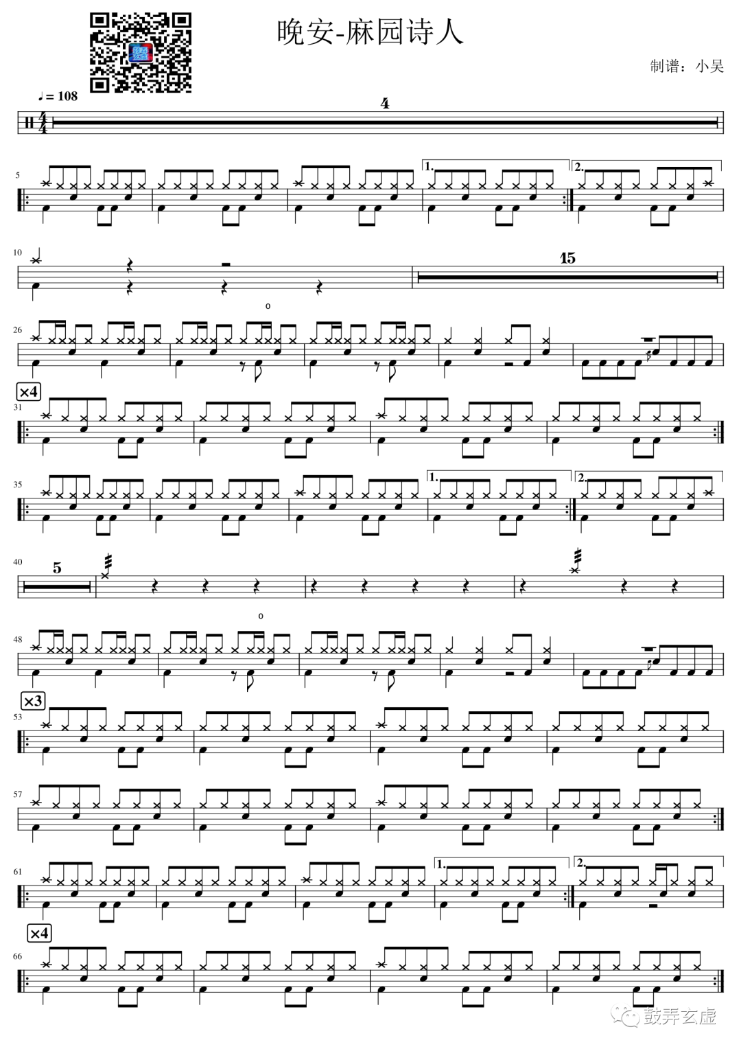 如龙维新OP《ClockStrikes》架子鼓谱,看哦爱随风编配出品,共有1张高清图谱,由打鼓谱上传并分享。