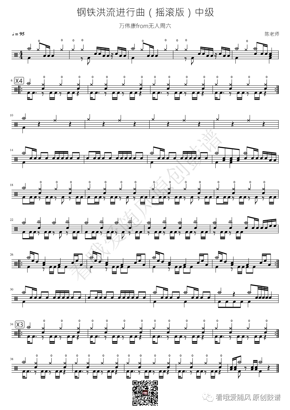 《钢铁洪流进行曲》鼓谱 - 架子鼓谱 - 摇滚版 (中级)