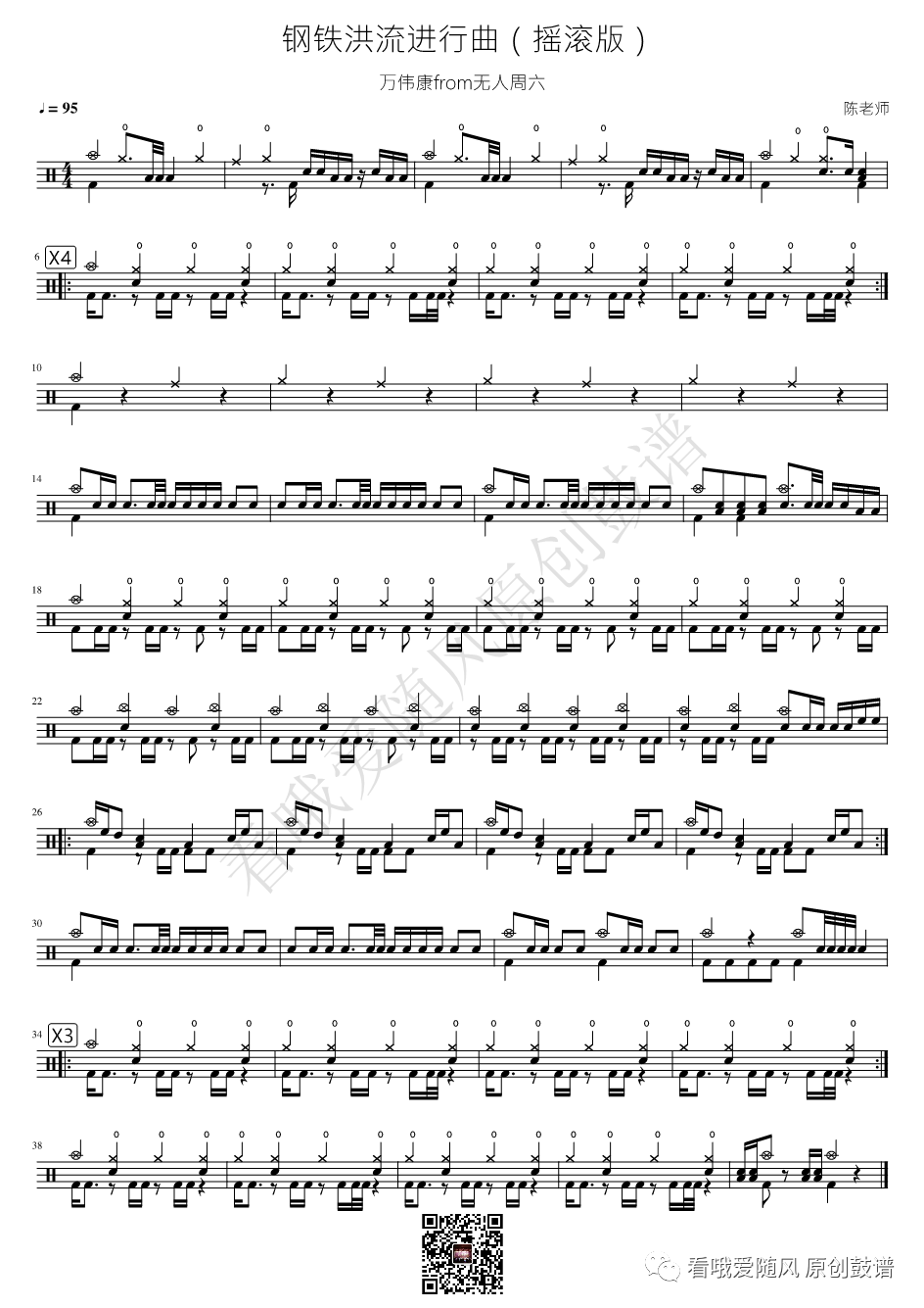 《钢铁洪流进行曲》架子鼓谱摇滚版, 看哦爱随风编配出品,共有1张高清图谱,由打鼓谱上传并分享。NO.420 钢铁洪流进行曲 摇滚版 鼓谱