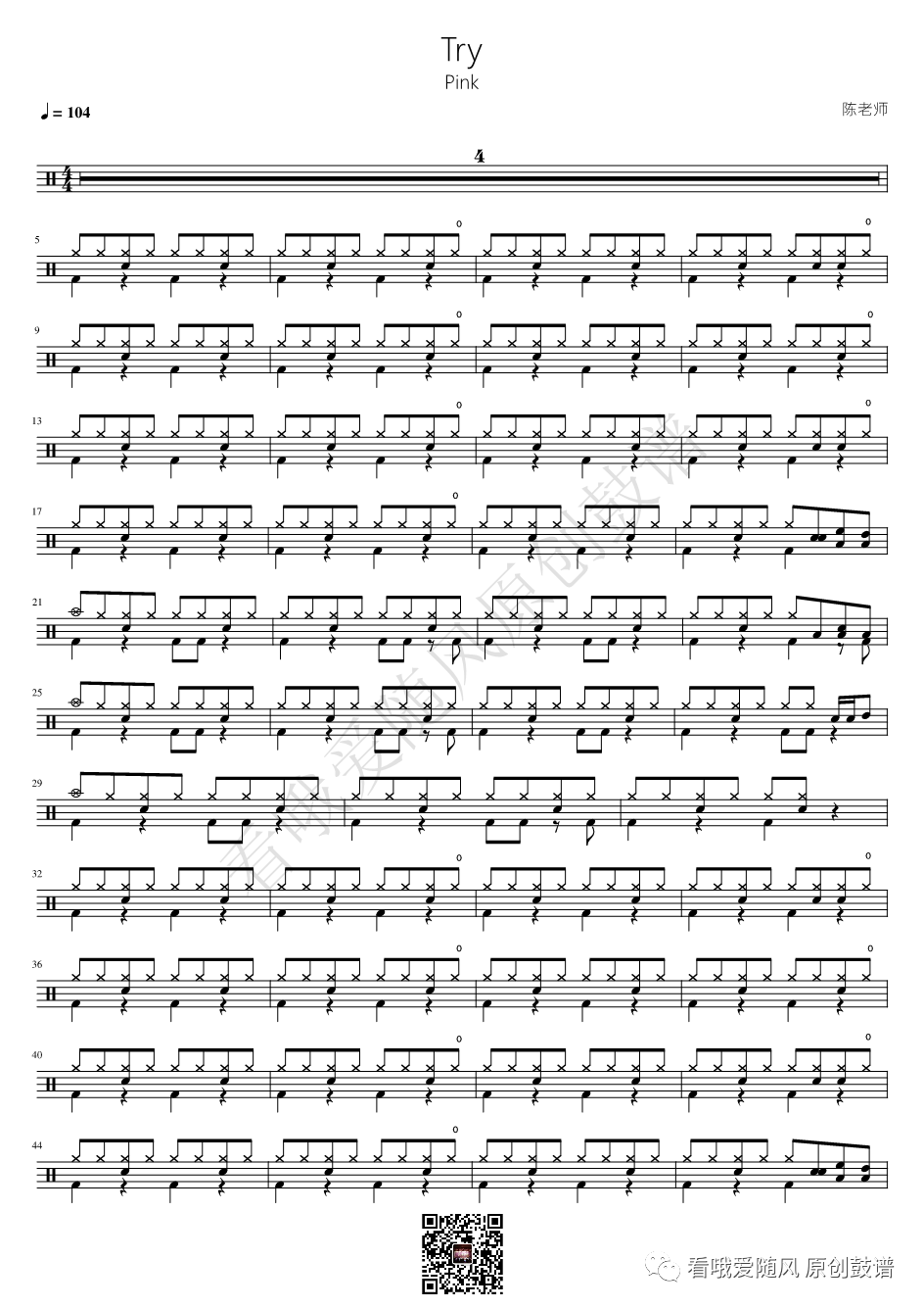ONEOKROCK《未完成交響曲》架子鼓谱,看哦爱随风编配出品,共有1张高清图谱,由打鼓谱上传并分享。