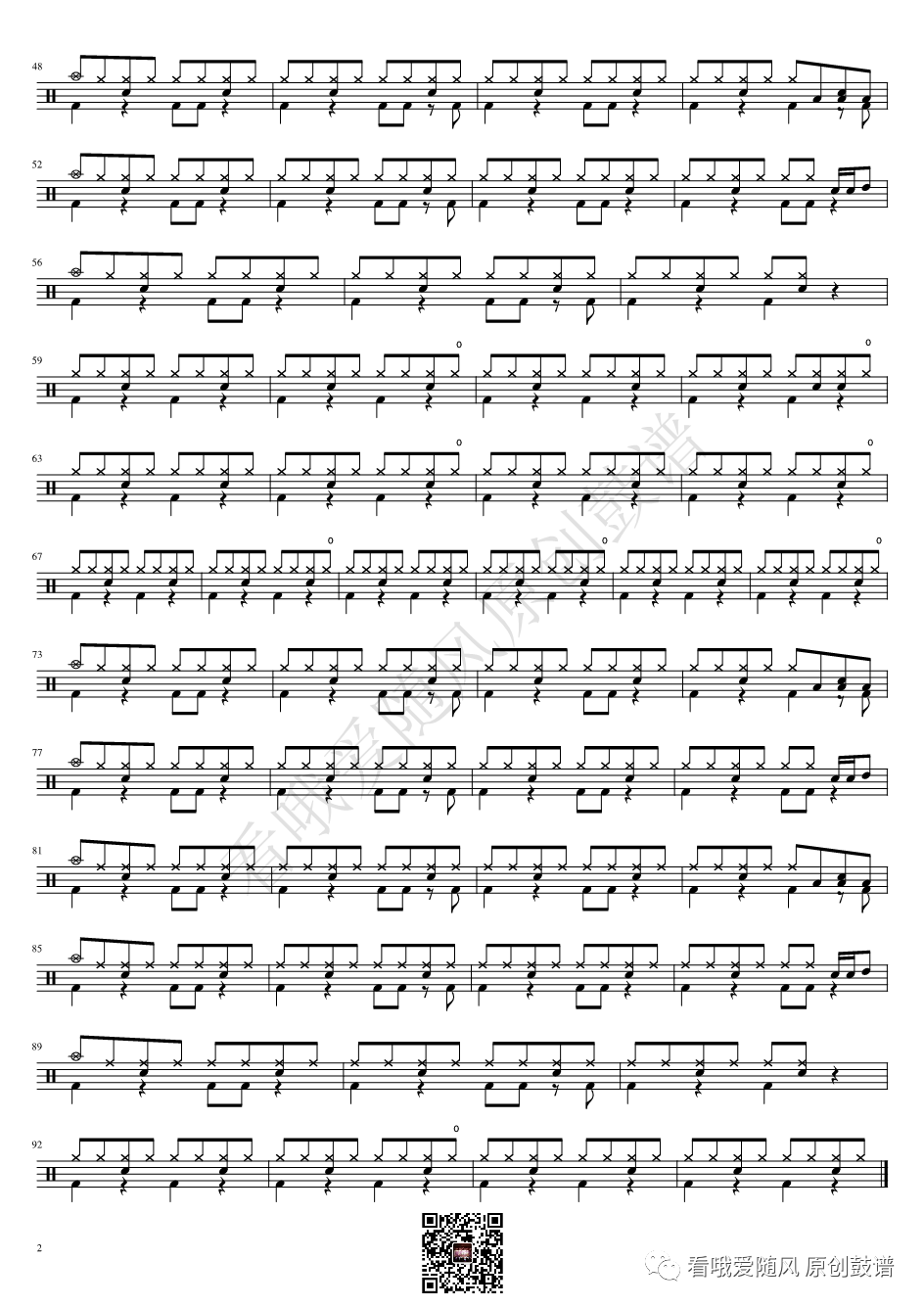 ONEOKROCK《IWasKing》架子鼓谱,看哦爱随风编配出品,共有2张高清图谱,由打鼓谱上传并分享。