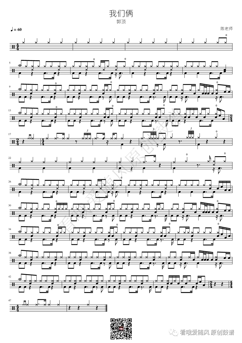 ONEOKROCK《未完成交響曲》架子鼓谱,看哦爱随风编配出品,共有1张高清图谱,由打鼓谱上传并分享。