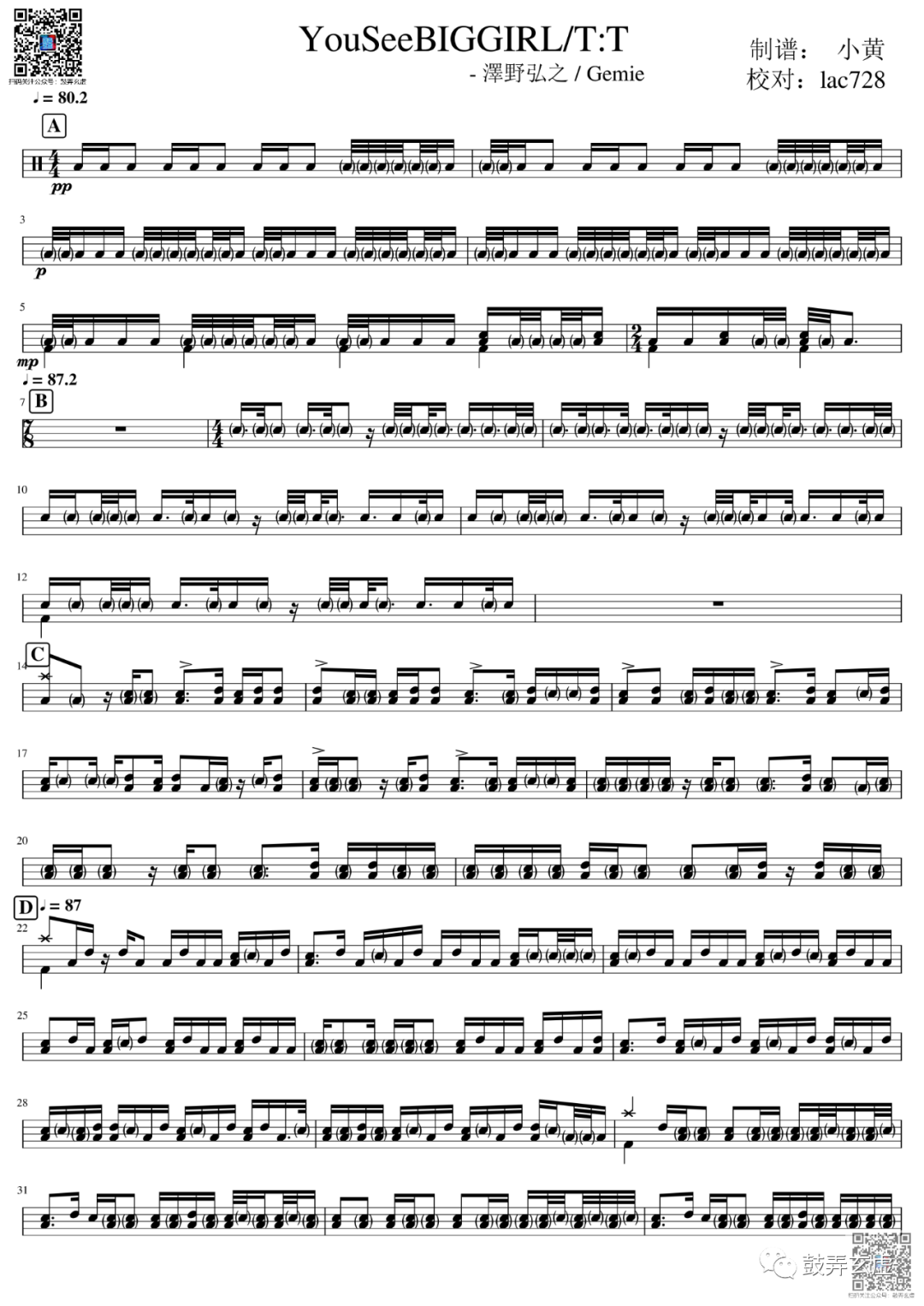 澤野弘之 / Gemie《YouSeeBIGGIRL/T:T》鼓谱 - 架子鼓谱 - 【超燃(难)鼓谱】:叛变a神曲 鼓弄玄虚 • 2022-11-03 • 阅读 1095 澤野弘之 / Gemie《YouSeeBIGGIRL/T:T》架子鼓谱【超燃(难)鼓谱】:叛变a神曲,鼓弄玄虚编配出品,共有2张高清图谱,由打鼓谱上传并分享。【超燃(难)鼓谱】:叛变神曲《YouSeeBIGGIRL/T:T》-澤野弘之 / Gemie(五鼓编配) 澤野弘之 / Gemie《YouSeeBIGGIRL/T:T》鼓谱 - 架子鼓谱 - 【超燃(难)鼓谱】:叛变a神曲 - 第1张 澤野弘之 / Gemie《YouSeeBIGGIRL/T:T》鼓谱 - 架子鼓谱 - 【超燃(难)鼓谱】:叛变a神曲 - 第2张 免责声明:本文版权归属鼓弄玄虚,本站不对其内容的准确性给予任何承诺,收录仅供读者参考。如本文侵犯了您的合法权益,请及时联系本站,我们将在24小时内删除处理。本文链接:https://www.dagupu.com/pu/77.html 盖君炎《我想要》鼓谱 - 架子鼓谱 上一篇 2022-11-03 希林娜依·高《颗粒季》鼓谱 - 架子鼓谱 下一篇 2022-11-03 相关推荐 ONE OK ROCK《Re:make》鼓谱 - 架子鼓谱 ONEOKROCK《Re:make》架子鼓谱,看哦爱随风编配出品,共有3张高清图谱,由打鼓谱上传并分享。 看哦爱随风 2023-06-17 5465 ONE OK ROCK《完全感觉Dreamer》鼓谱 - 架子鼓谱 ONEOKROCK《完全感觉Dreamer》架子鼓谱,看哦爱随风编配出品,共有4张高清图谱,由打鼓谱上传并分享。 看哦爱随风 2023-06-17 4043 ONE OK ROCK《The Beginning》鼓谱 - 架子鼓谱 ONEOKROCK《TheBeginning》架子鼓谱,看哦爱随风编配出品,共有3张高清图谱,由打鼓谱上传并分享。 看哦爱随风 2023-06-17 3607 ONE OK ROCK《未完成交響曲》鼓谱 - 架子鼓谱 ONEOKROCK《未完成交響曲》架子鼓谱,看哦爱随风编配出品,共有1张高清图谱,由打鼓谱上传并分享。 看哦爱随风 2023-06-17 3253 网球王子《future》鼓谱 - 架子鼓谱 网球王子《future》架子鼓谱,看哦爱随风编配出品,共有1张高清图谱,由打鼓谱上传并分享。 看哦爱随风 2023-06-17 3785 夏日入侵企画《人间萤火》鼓谱 - 架子鼓谱 夏日入侵企画《人间萤火》架子鼓谱,看哦爱随风编配出品,共有2张高清图谱,由打鼓谱上传并分享。 看哦爱随风 2023-02-26 3598 夏日入侵企画《勇气》鼓谱 - 架子鼓谱 夏日入侵企画《勇气》架子鼓谱,看哦爱随风编配出品,共有2张高清图谱,由打鼓谱上传并分享。 看哦爱随风 2023-02-26 3600 周杰伦《一路向北》鼓谱 - 架子鼓谱 周杰伦《一路向北》架子鼓谱,看哦爱随风编配出品,共有1张高清图谱,由打鼓谱上传并分享。 看哦爱随风 2023-02-26 5474 萧敬腾《倒带》鼓谱 - 架子鼓谱 萧敬腾《倒带》架子鼓谱,看哦爱随风编配出品,共有2张高清图谱,由打鼓谱上传并分享。 看哦爱随风 2023-02-26 3944 容祖儿《东京人寿》鼓谱 - 架子鼓谱 容祖儿《东京人寿》架子鼓谱,看哦爱随风编配出品,共有2张高清图谱,由打鼓谱上传并分享。 看哦爱随风 2023-02-26 3520 悶餅MOONBAND《Dear Mary》鼓谱 - 架子鼓谱 悶餅MOONBAND《DearMary》架子鼓谱,看哦爱随风编配出品,共有2张高清图谱,由打鼓谱上传并分享。 看哦爱随风 2023-02-19 2930 MY FIRST STORY《Missing You》鼓谱 - 架子鼓谱 MYFIRSTSTORY《MissingYou》架子鼓谱,看哦爱随风编配出品,共有1张高清图谱,由打鼓谱上传并分享。 看哦爱随风 2023-02-19 3298 ONE OK ROCK《I Was King》鼓谱 - 架子鼓谱 ONEOKROCK《IWasKing》架子鼓谱,看哦爱随风编配出品,共有2张高清图谱,由打鼓谱上传并分享。 看哦爱随风 2023-02-19 3143 ONE OK ROCK《I Was King》鼓谱 - 架子鼓谱 ONEOKROCK《IWasKing》架子鼓谱,看哦爱随风编配出品,共有2张高清图谱,由打鼓谱上传并分享。 看哦爱随风 2023-02-19 3204 ONE OK ROCK《エトセトラ》鼓谱 - 架子鼓谱 ONEOKROCK《エトセトラ》架子鼓谱,看哦爱随风编配出品,共有2张高清图谱,由打鼓谱上传并分享。 看哦爱随风 2023-02-19 3266 如龙 维新 OP《Clock Strikes》鼓谱 - 架子鼓谱 如龙维新OP《ClockStrikes》架子鼓谱,看哦爱随风编配出品,共有1张高清图谱,由打鼓谱上传并分享。 看哦爱随风 2023-02-19 3204