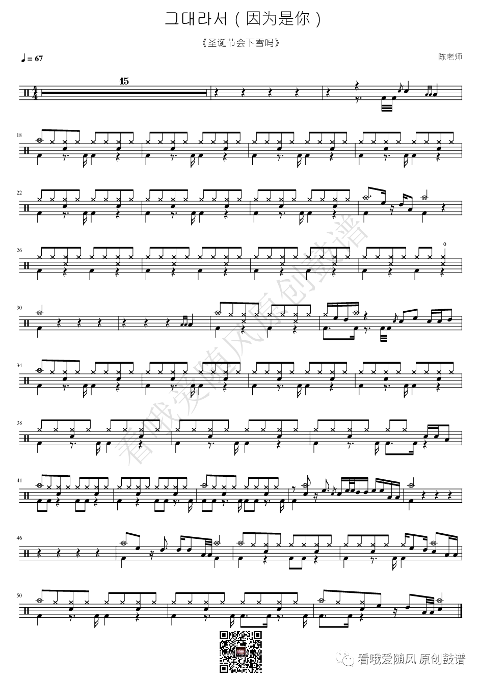 圣诞节会下雪吗《因为是你》架子鼓谱, 看哦爱随风编配出品,共有1张高清图谱,由打鼓谱上传并分享。NO.449 因为是你【圣诞节会下雪吗】鼓谱