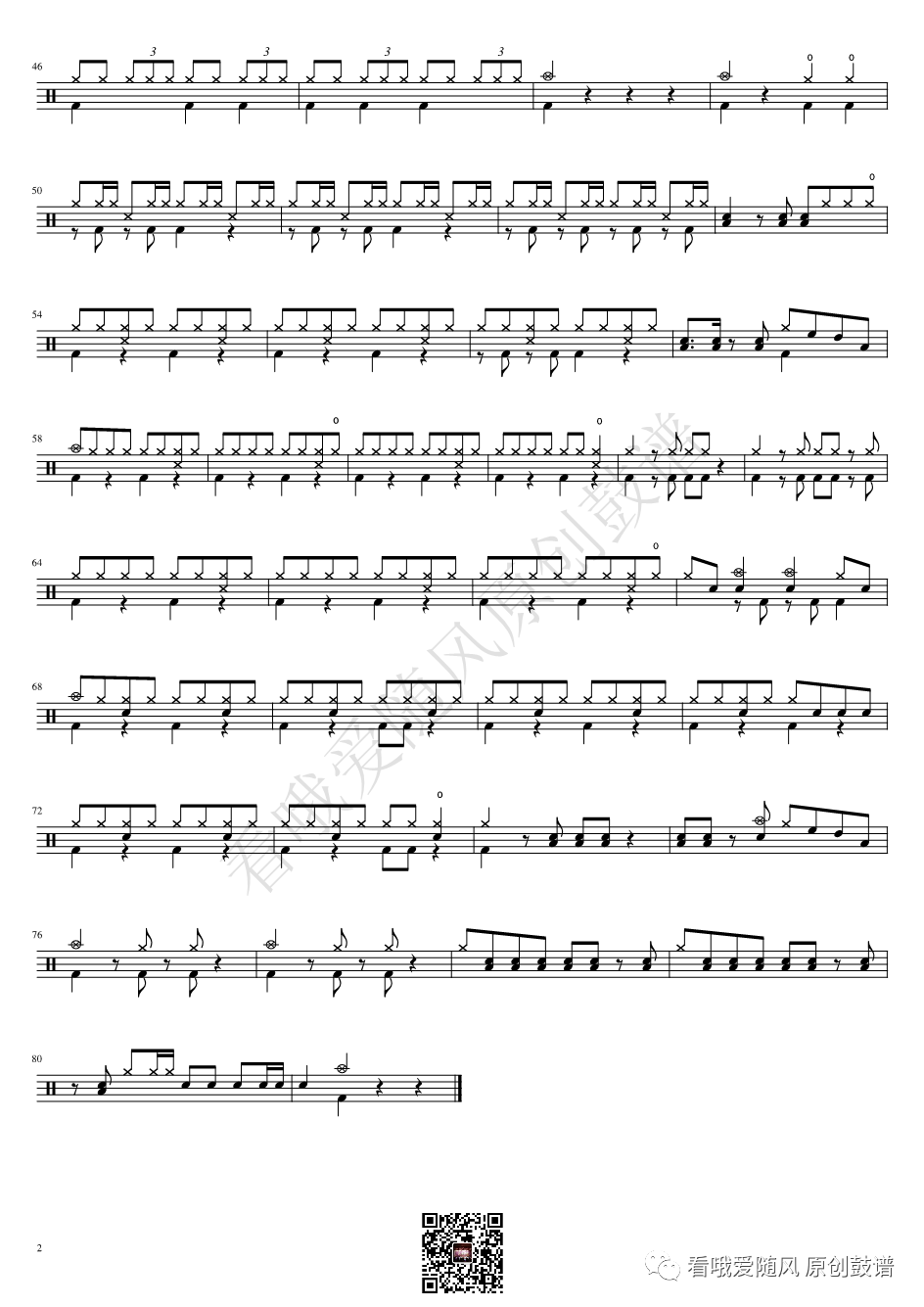 ONEOKROCK《IWasKing》架子鼓谱,看哦爱随风编配出品,共有2张高清图谱,由打鼓谱上传并分享。