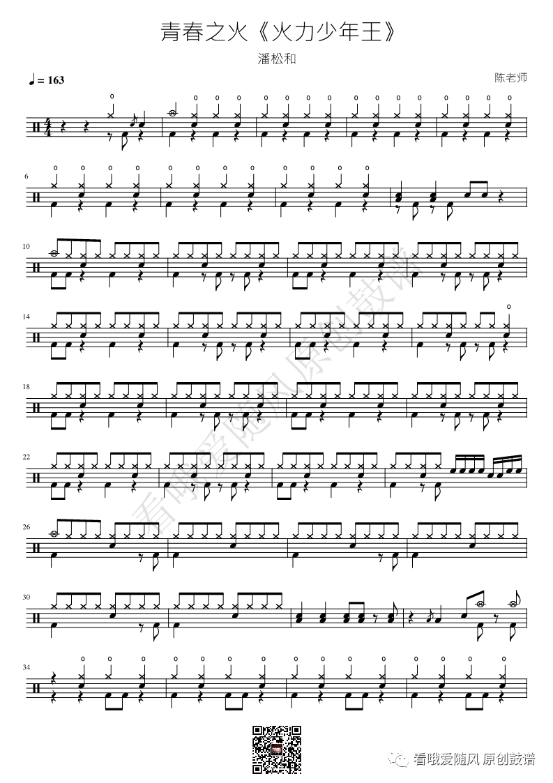 火力少年王《青春之火》架子鼓谱, 看哦爱随风编配出品,共有1张高清图谱,由打鼓谱上传并分享。NO.444 青春之火【火力少年王】鼓谱