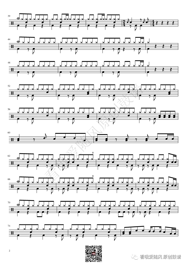 如龙维新OP《ClockStrikes》架子鼓谱,看哦爱随风编配出品,共有1张高清图谱,由打鼓谱上传并分享。