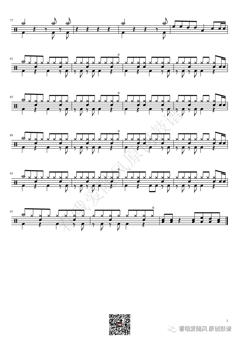 ONEOKROCK《Re:make》架子鼓谱,看哦爱随风编配出品,共有3张高清图谱,由打鼓谱上传并分享。