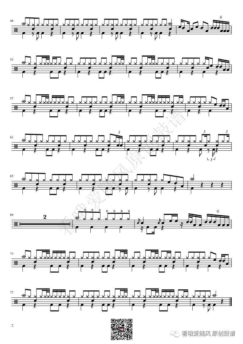ONEOKROCK《IWasKing》架子鼓谱,看哦爱随风编配出品,共有2张高清图谱,由打鼓谱上传并分享。