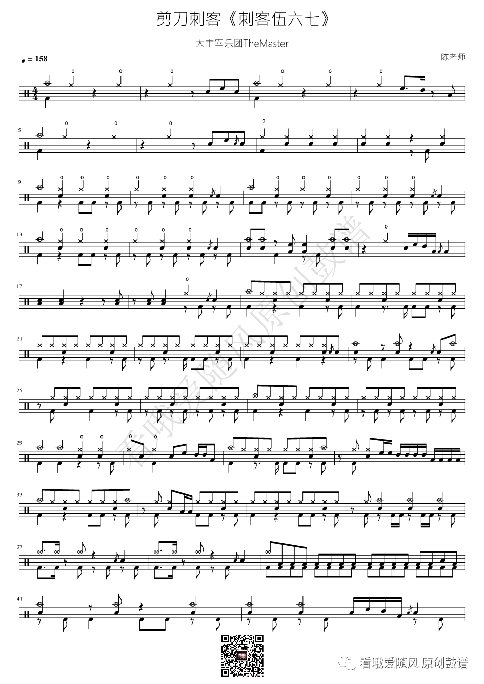 刺客伍六七《剪刀刺客》架子鼓谱, 看哦爱随风编配出品,共有1张高清图谱,由打鼓谱上传并分享。NO.454 剪刀刺客【刺客伍六七】鼓谱
