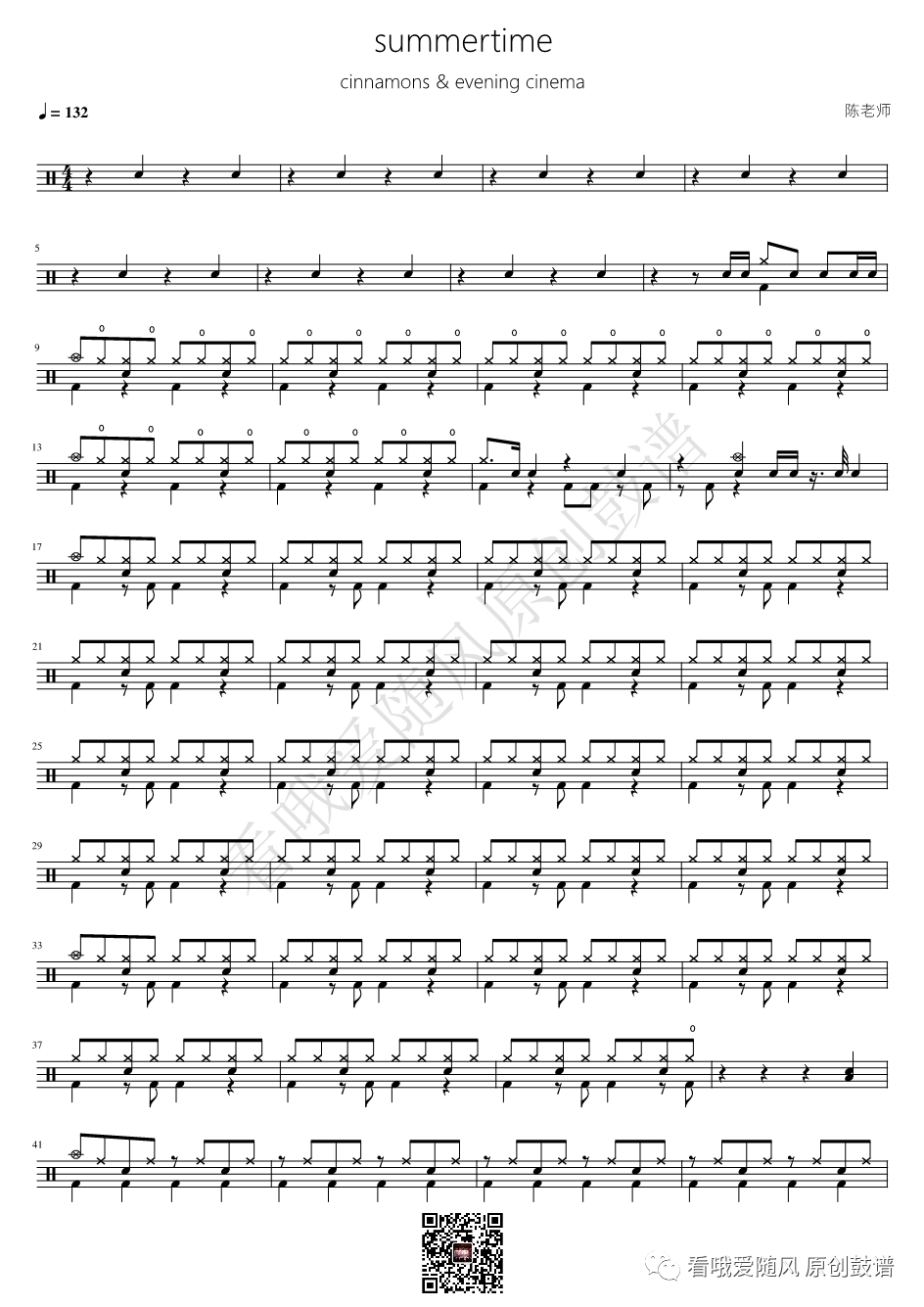 《summertime》架子鼓谱, 看哦爱随风编配出品,共有1张高清图谱,由打鼓谱上传并分享。NO.471 summertime 鼓谱