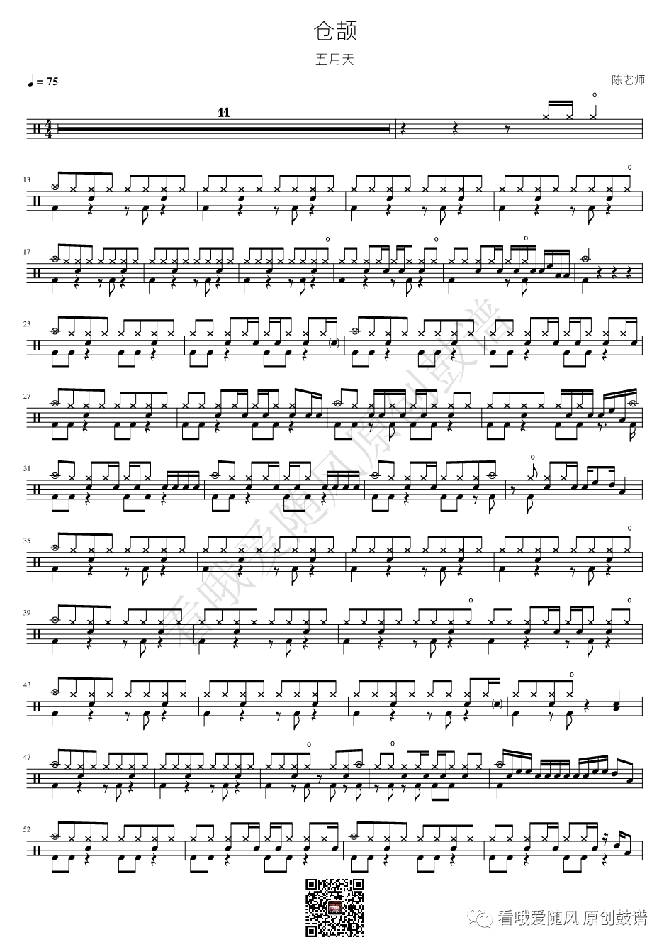 如龙维新OP《ClockStrikes》架子鼓谱,看哦爱随风编配出品,共有1张高清图谱,由打鼓谱上传并分享。