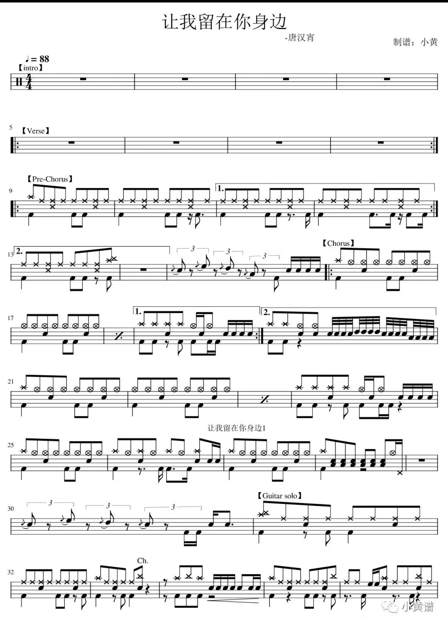 唐汉霄《让我留在你身边》鼓谱 - 架子鼓谱