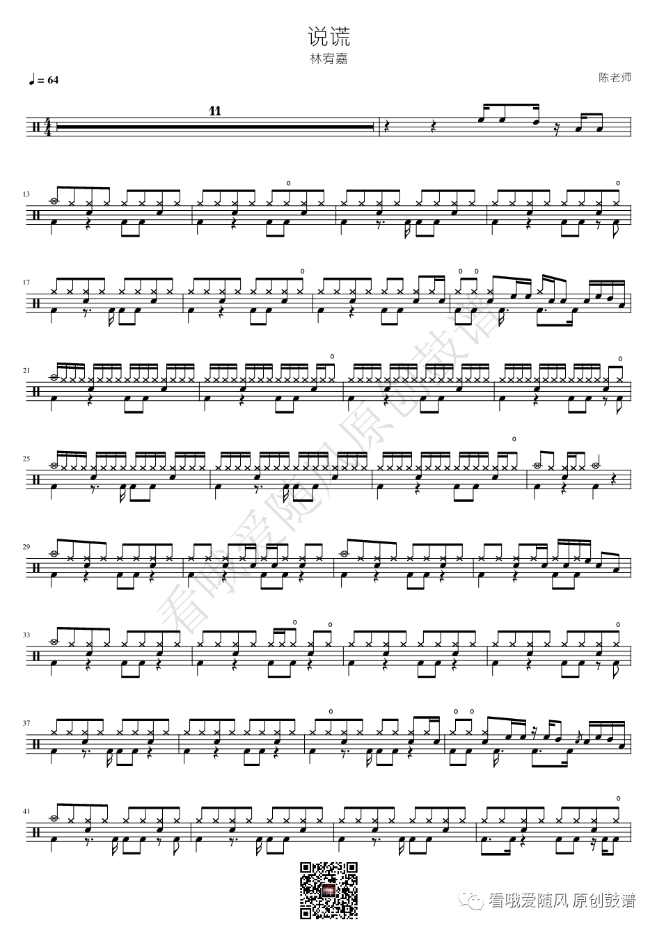 林宥嘉《说谎》鼓谱 - 架子鼓谱