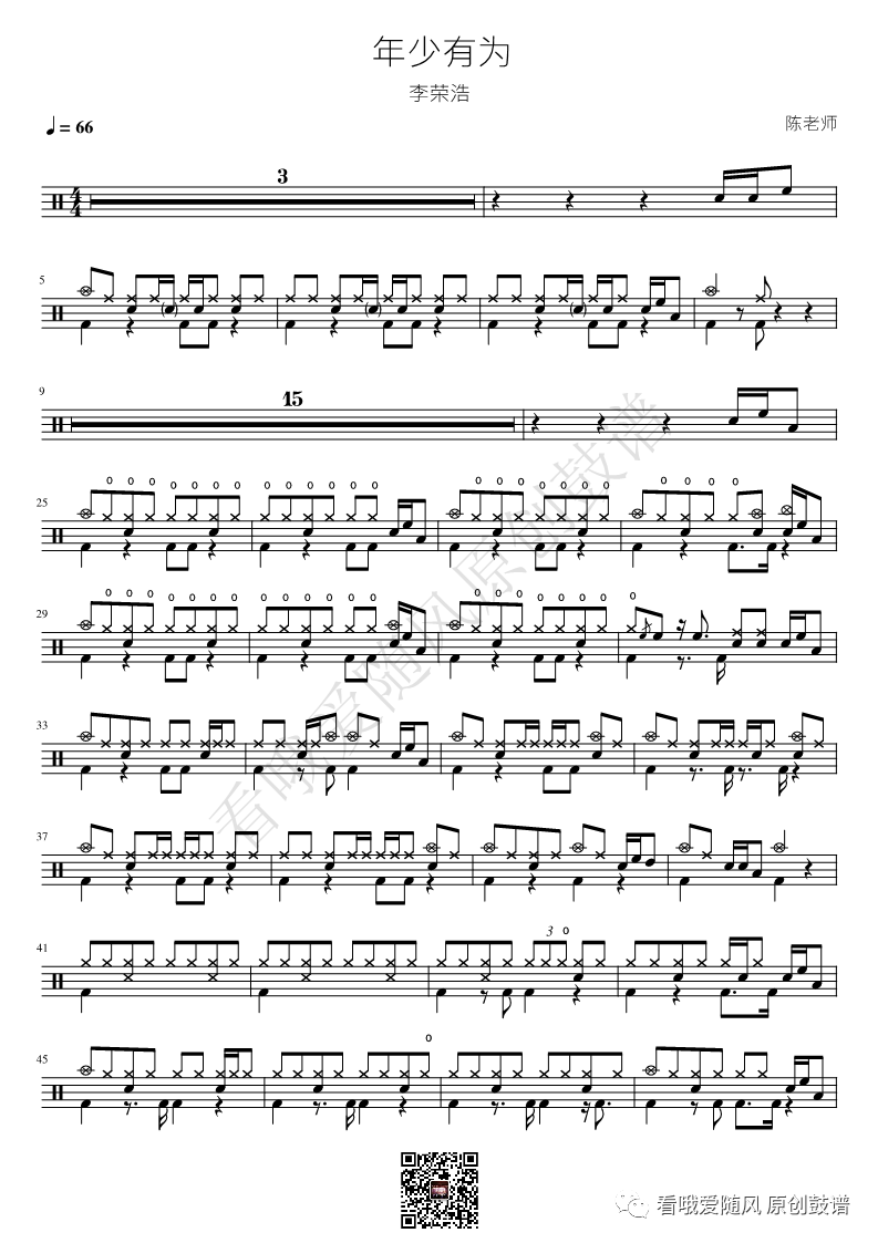 ONEOKROCK《未完成交響曲》架子鼓谱,看哦爱随风编配出品,共有1张高清图谱,由打鼓谱上传并分享。