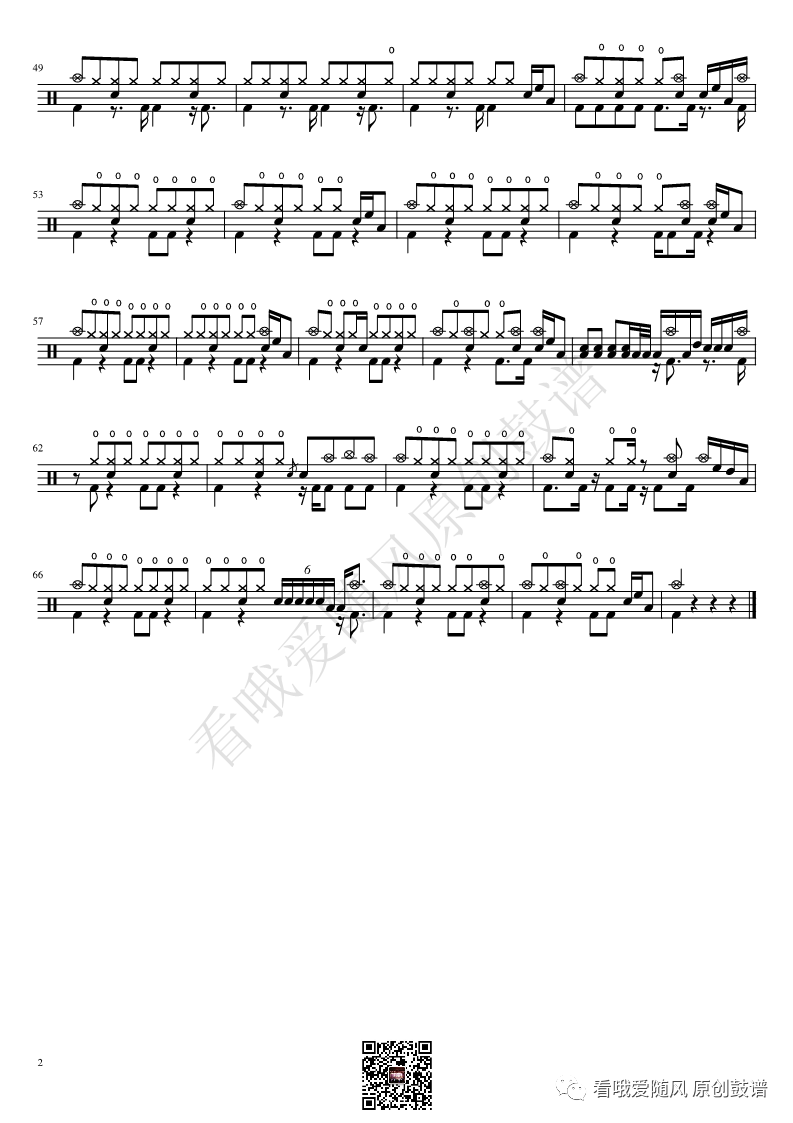 ONEOKROCK《IWasKing》架子鼓谱,看哦爱随风编配出品,共有2张高清图谱,由打鼓谱上传并分享。