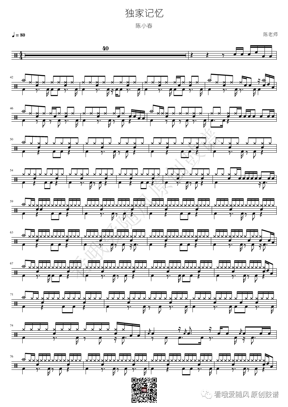 MYFIRSTSTORY《MissingYou》架子鼓谱,看哦爱随风编配出品,共有1张高清图谱,由打鼓谱上传并分享。