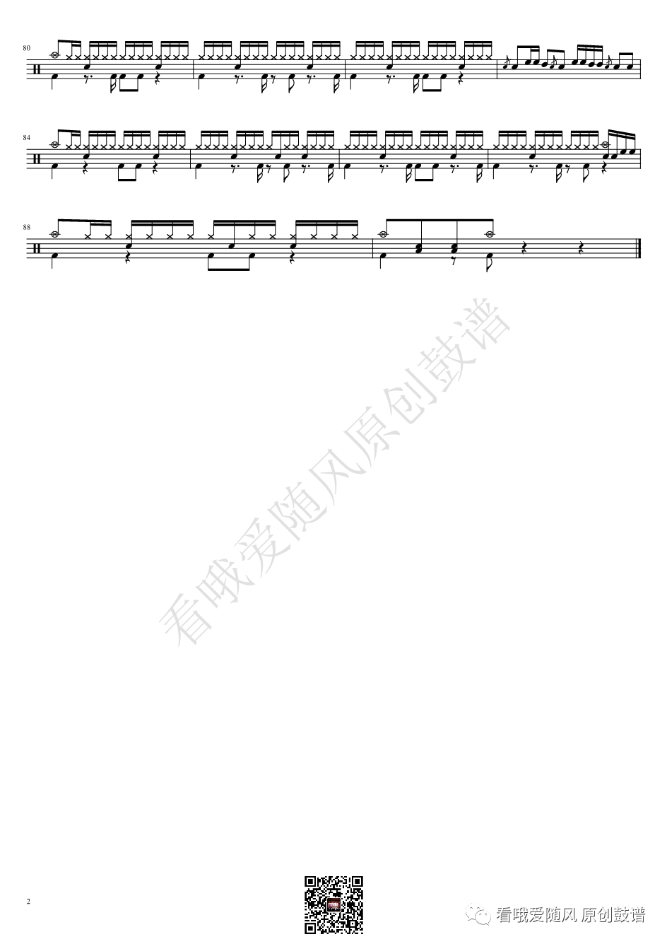 ONEOKROCK《IWasKing》架子鼓谱,看哦爱随风编配出品,共有2张高清图谱,由打鼓谱上传并分享。