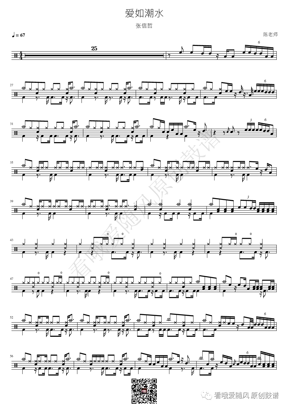如龙维新OP《ClockStrikes》架子鼓谱,看哦爱随风编配出品,共有1张高清图谱,由打鼓谱上传并分享。