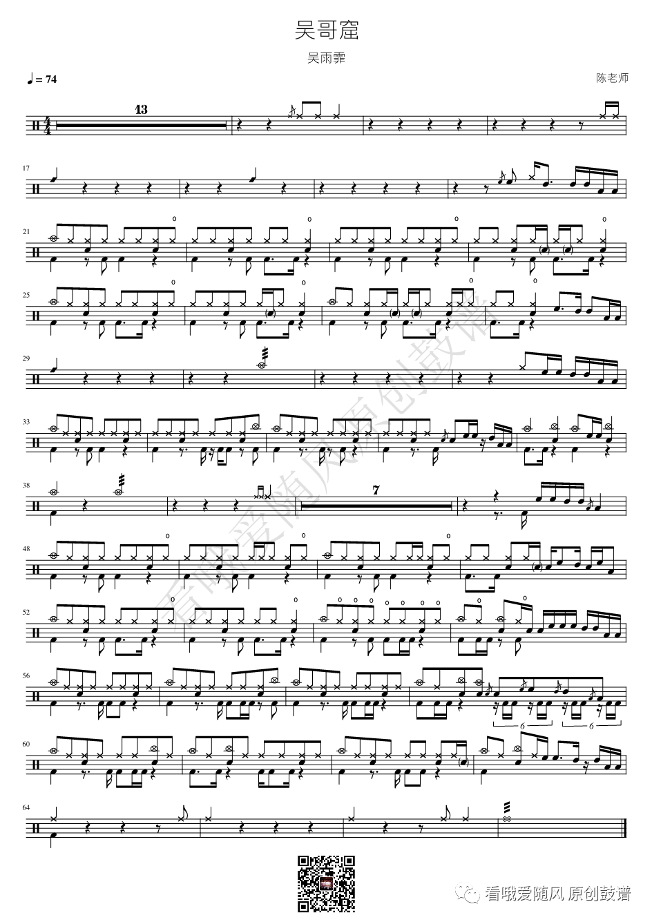 ONEOKROCK《未完成交響曲》架子鼓谱,看哦爱随风编配出品,共有1张高清图谱,由打鼓谱上传并分享。