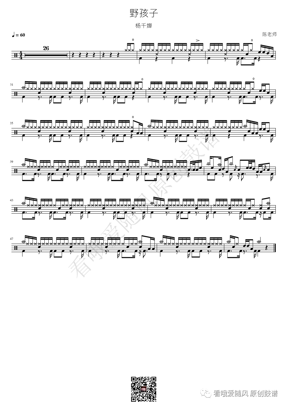 杨千嬅《少女的祈祷》鼓谱 - 架子鼓谱