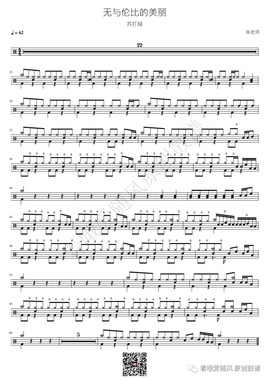 苏打绿《无与伦比的美丽》架子鼓谱, 看哦爱随风编配出品,共有1张高清图谱,由打鼓谱上传并分享。NO.490 无与伦比的美丽 苏打绿 鼓谱
