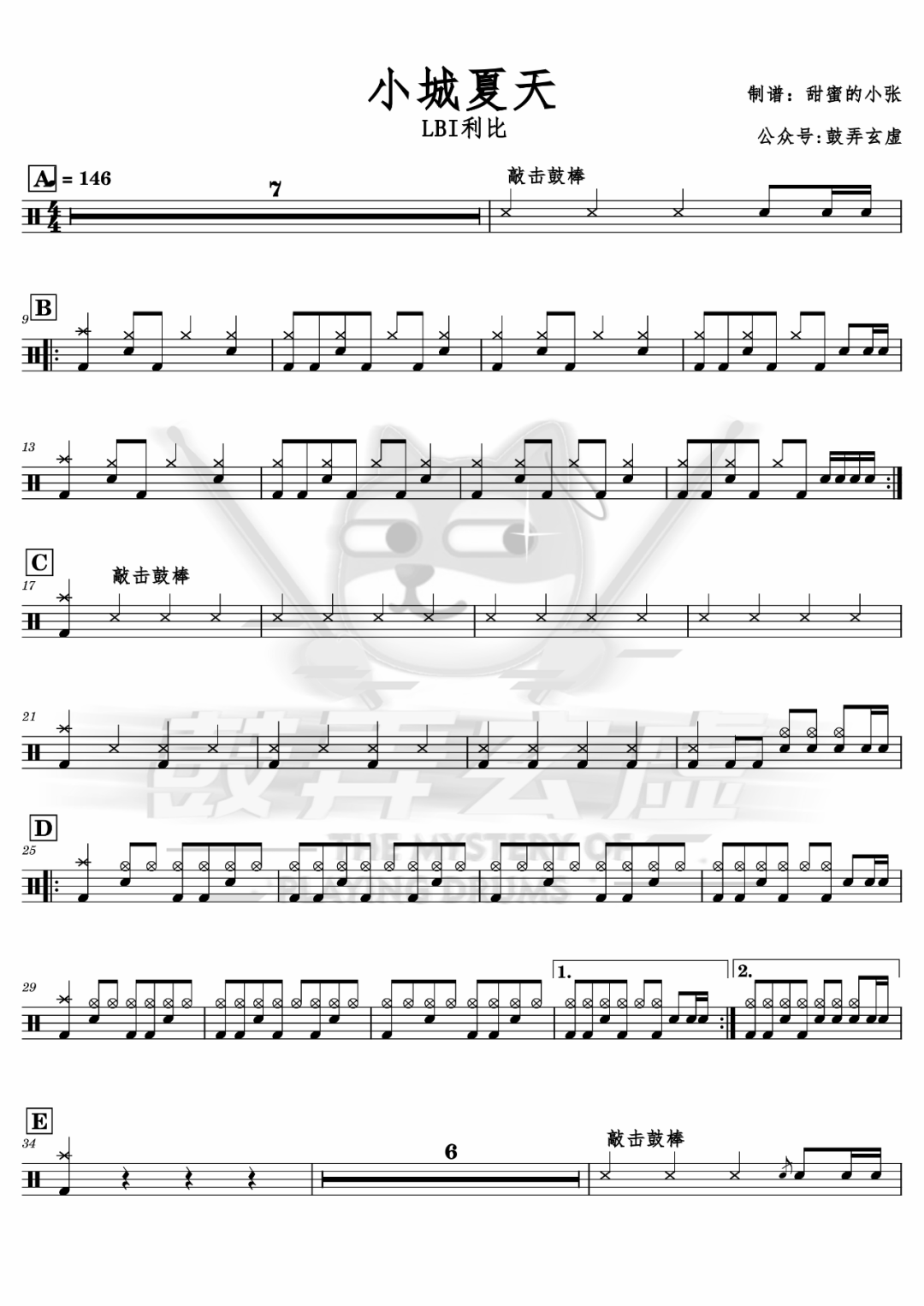 如龙维新OP《ClockStrikes》架子鼓谱,看哦爱随风编配出品,共有1张高清图谱,由打鼓谱上传并分享。