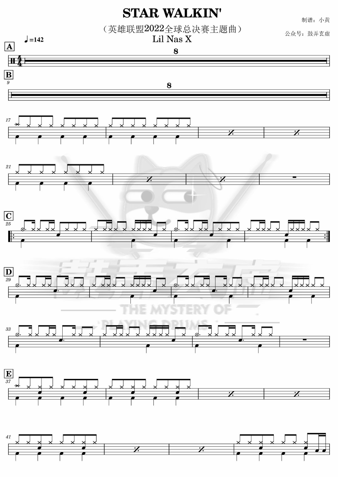 英雄联盟《STAR WALKIN》鼓谱 - 架子鼓谱