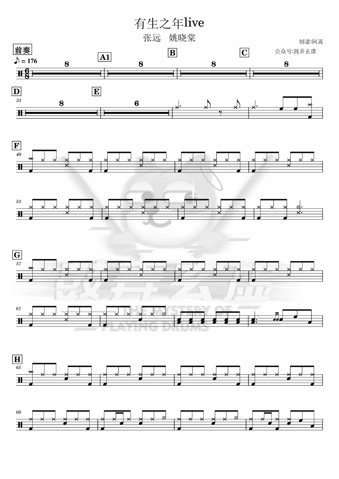 张远 /姚晓棠《有生之年》架子鼓谱天赐的声音Live,鼓弄玄虚编配出品,共有2张高清图谱,由打鼓谱上传并分享。鼓谱:《有生之年》-张远 /姚晓棠(天赐的声音Live)