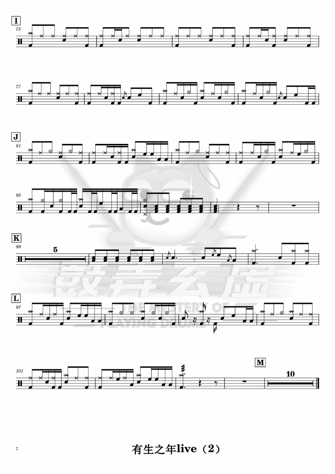 ONEOKROCK《IWasKing》架子鼓谱,看哦爱随风编配出品,共有2张高清图谱,由打鼓谱上传并分享。