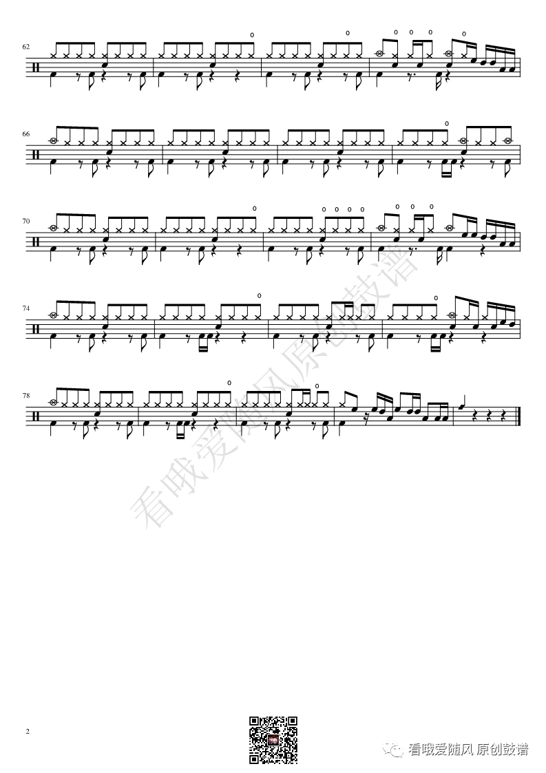ONEOKROCK《IWasKing》架子鼓谱,看哦爱随风编配出品,共有2张高清图谱,由打鼓谱上传并分享。