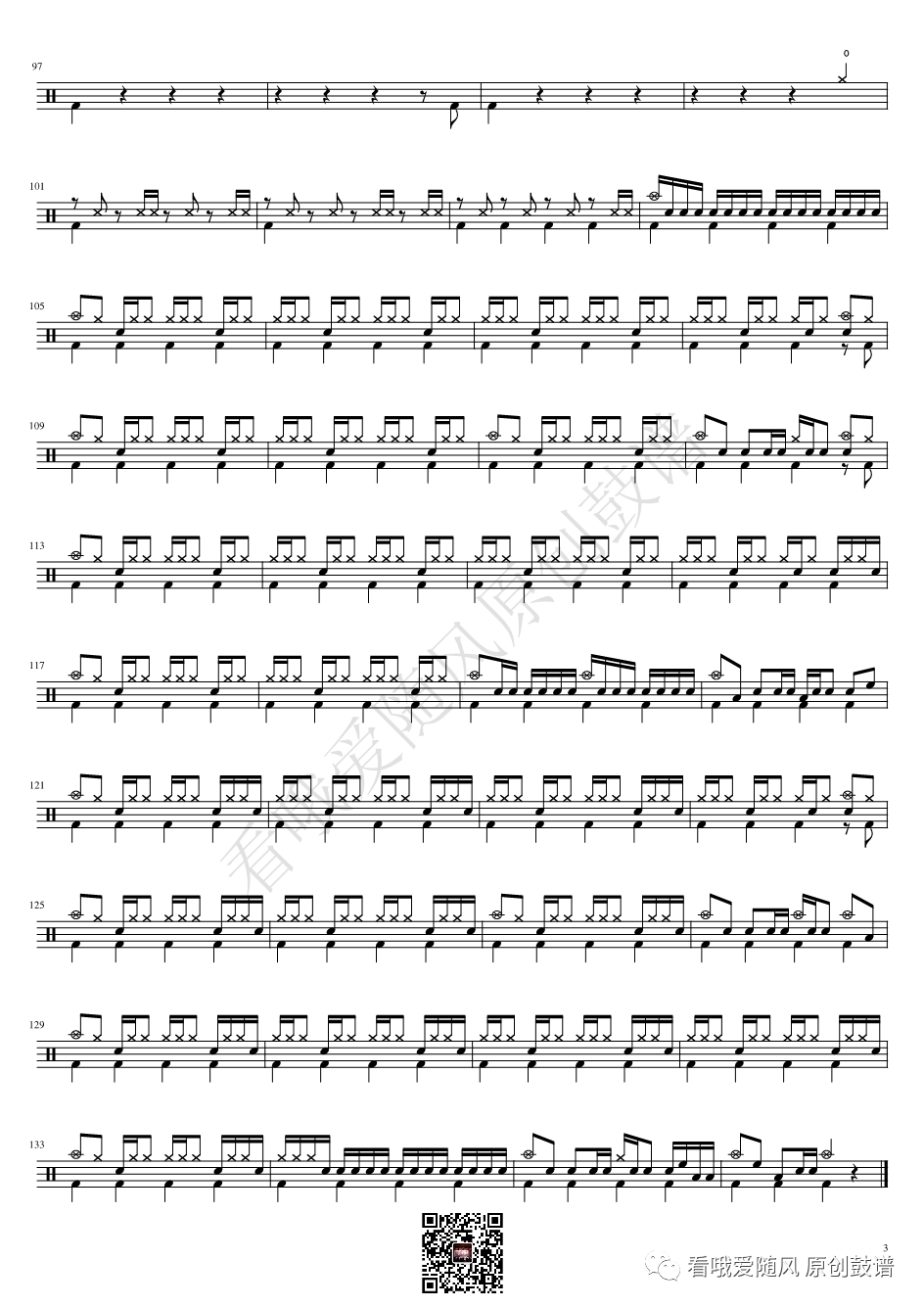 ONEOKROCK《未完成交響曲》架子鼓谱,看哦爱随风编配出品,共有1张高清图谱,由打鼓谱上传并分享。
