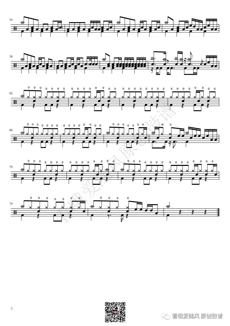ONEOKROCK《IWasKing》架子鼓谱,看哦爱随风编配出品,共有2张高清图谱,由打鼓谱上传并分享。