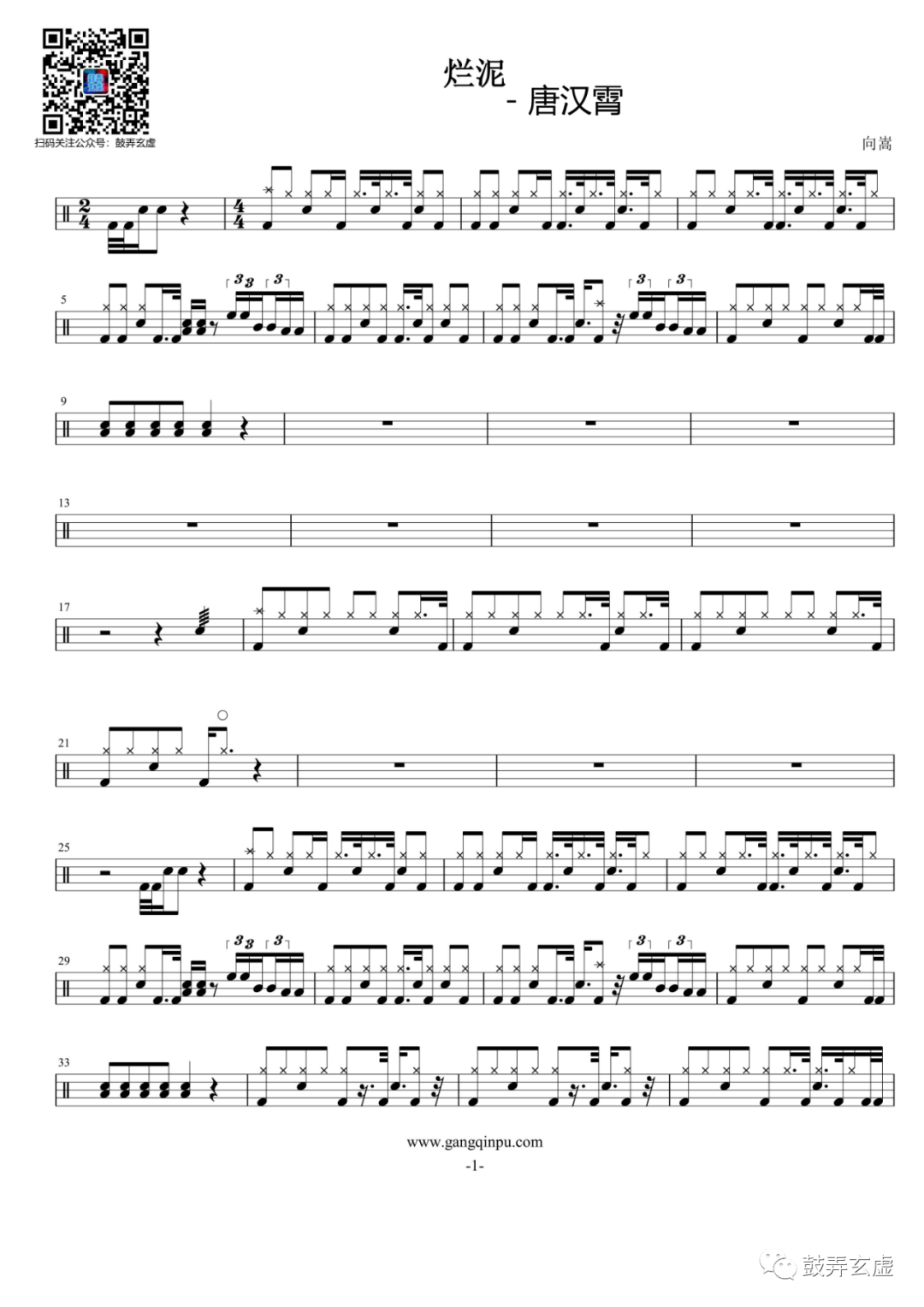 歌之初乐队《仙人指路》鼓谱 - 架子鼓谱