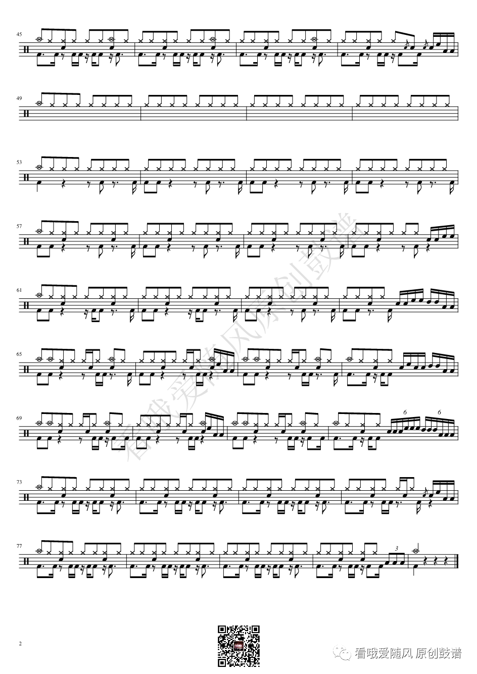 ONEOKROCK《IWasKing》架子鼓谱,看哦爱随风编配出品,共有2张高清图谱,由打鼓谱上传并分享。