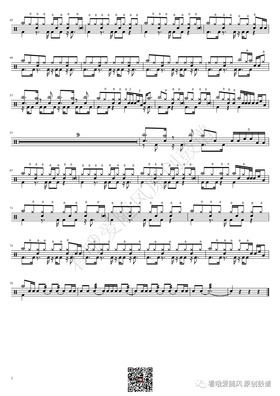 ONEOKROCK《IWasKing》架子鼓谱,看哦爱随风编配出品,共有2张高清图谱,由打鼓谱上传并分享。