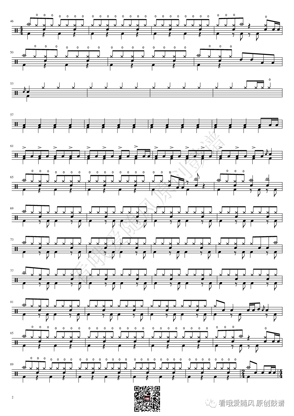 ONEOKROCK《IWasKing》架子鼓谱,看哦爱随风编配出品,共有2张高清图谱,由打鼓谱上传并分享。