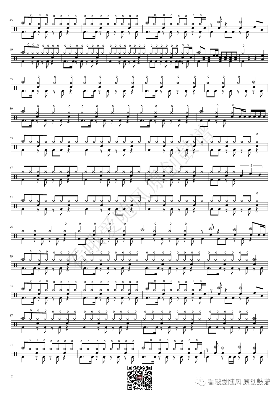 ONEOKROCK《未完成交響曲》架子鼓谱,看哦爱随风编配出品,共有1张高清图谱,由打鼓谱上传并分享。