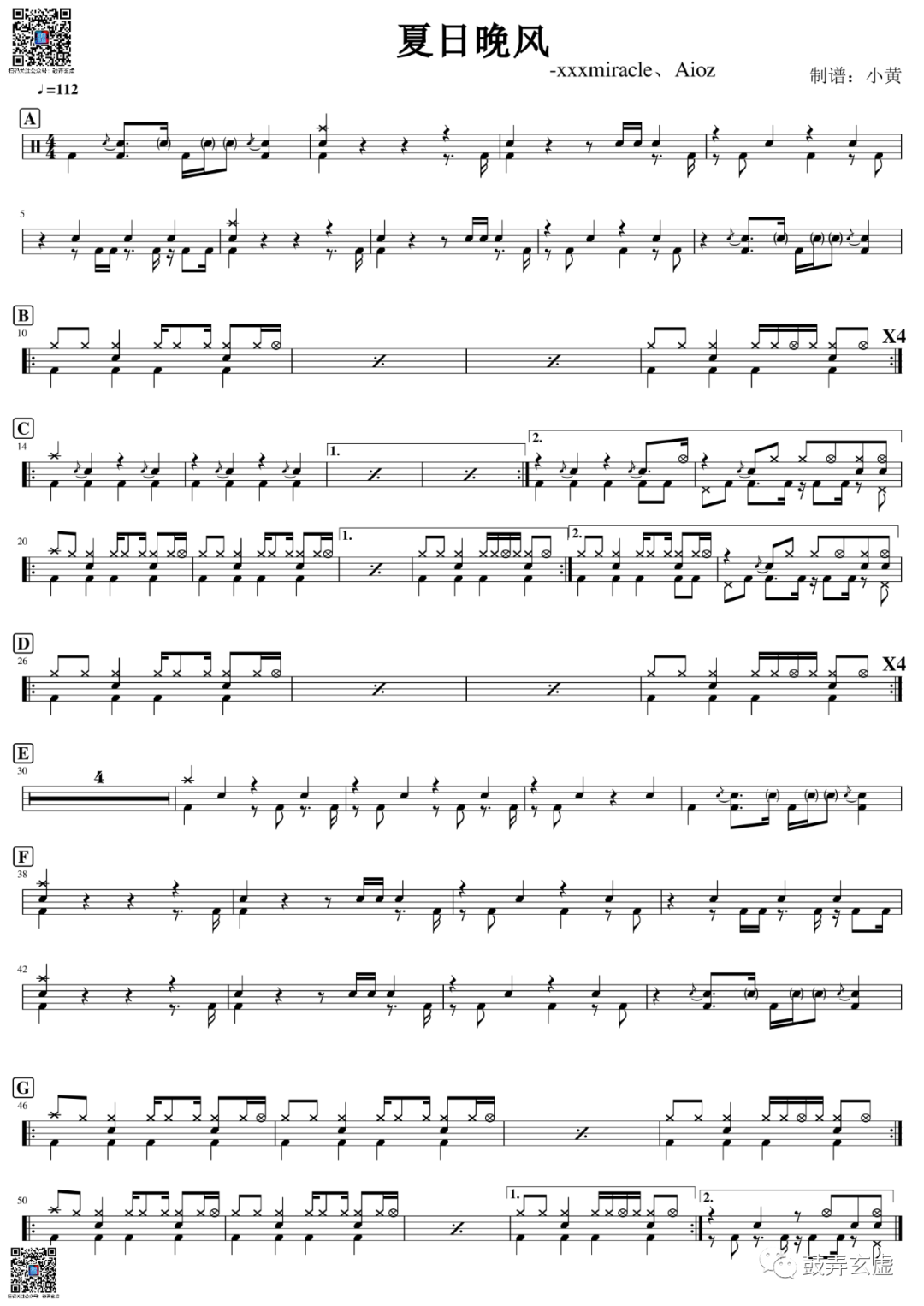 xxxmiracle、Aioz《夏日晚风》架子鼓谱,鼓弄玄虚编配出品,共有1张高清图谱,由打鼓谱上传并分享。鼓谱:《夏日晚风》--xxxmiracle、Aioz
